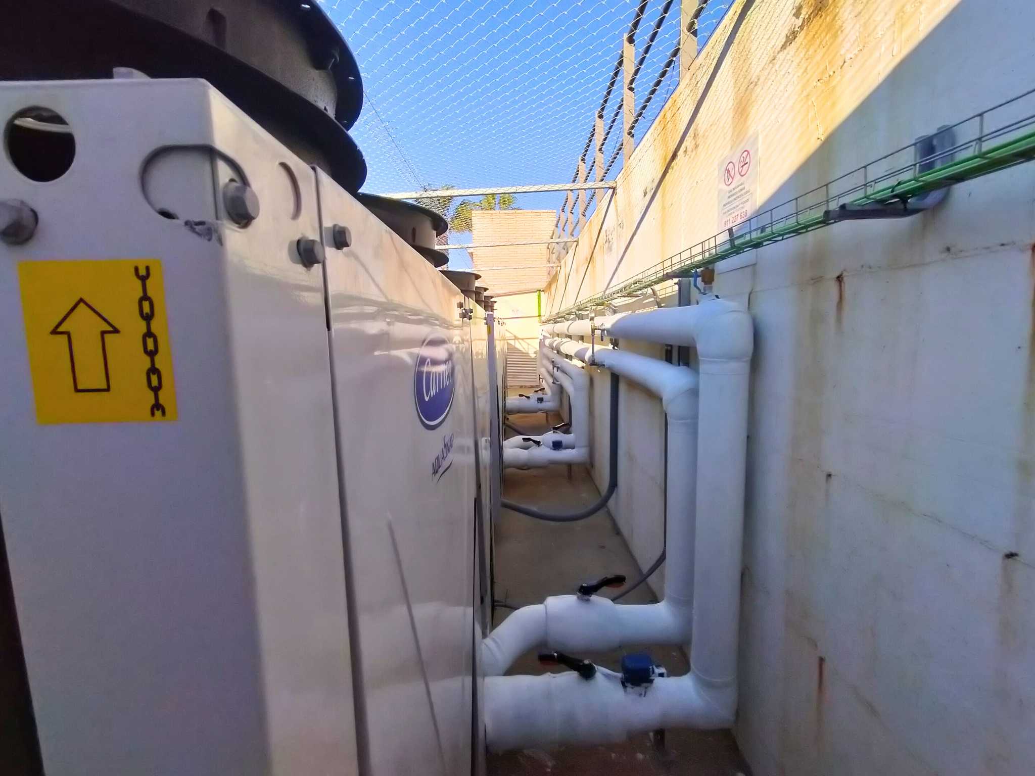 La actuación ha supuesto una renovación completa de los sistemas de producción de calor y bombeo, sustituyendo las calderas existentes por nuevas bombas de calor, de aerotermia, alta eficiencia y bajo consumo, además de incorporar tecnología de control centralizado avanzado que permite una gestión más precisa, automatizada y sostenible del sistema térmico.